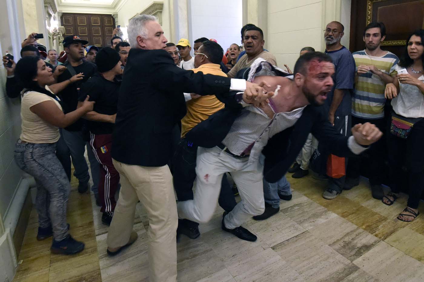 Caracas, 23/10/16. Este domingo, se llevó a cabo una sesión especial en la Asamblea Nacional, con la intención de restituir el orden constitucional, acuerdo que fue aprobado por la mayoría calificada del parlamento, sin embargo, cuando se efectuaba el debate, a eso de la 1 y 30 de la tarde, un grupo de personas afectas al oficialismo, irrumpieron el recinto parlamentario, donde se registraron heridos y destrozos de bienes del hemiciclo de sesiones.